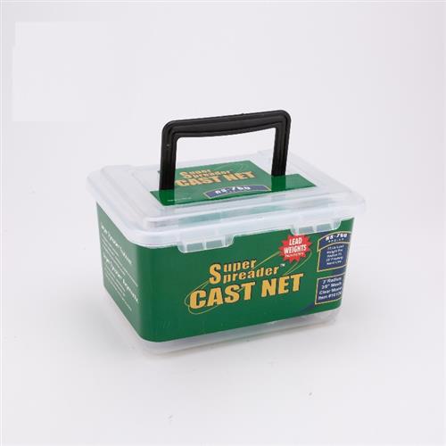 La atarraya vienen en una caja plástica para su comodo transporte. La maya o red esta tejida en cuadritos de 1cmx1cm. Ideal para la captura de Variada de laguna, rio y mar.