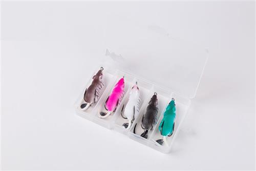 Este set esta conformado por señuelos blandos con cucharita giratoria y anzuelos dobles 4x